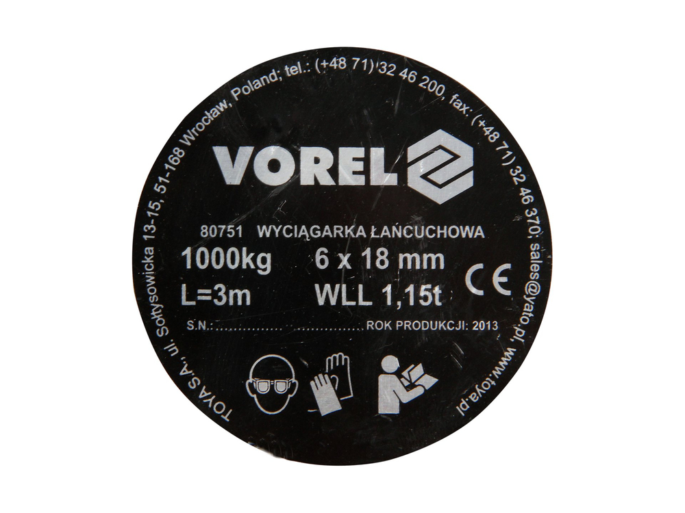 - Wyciągarka łańcuchowa 1000 kg marki Vorel.