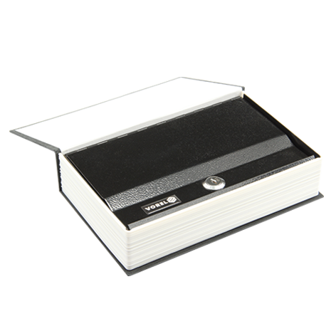 • Przenośna kaseta na pieniądze w kształcie książki o wymiarze 180x115x55mm.