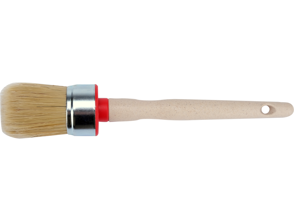 Pennello rotondo, largo 40 mm, in setole naturali con TOPS 60. Adatto per lavori di pittura, per tutti i tipi di vernici e impregnanti.