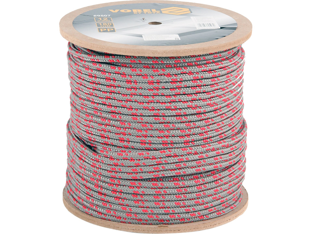 - Lina pleciona 12 mm/180 m z 24 włókien polipropylenowych uzupełniona polipropylenowym wytrzymałym na zrywanie rdzeniem.