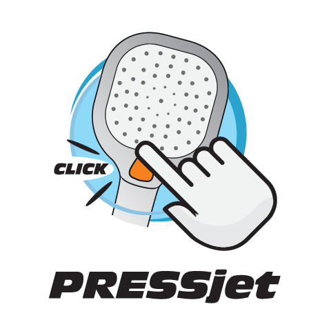 L'interruttore di funzione PRESSjet, situato nel punto ergonomico della manopola della doccia, fa sì che non sia più necessaria una seconda mano per cambiare il tipo di getto in modo rapido ed efficace.