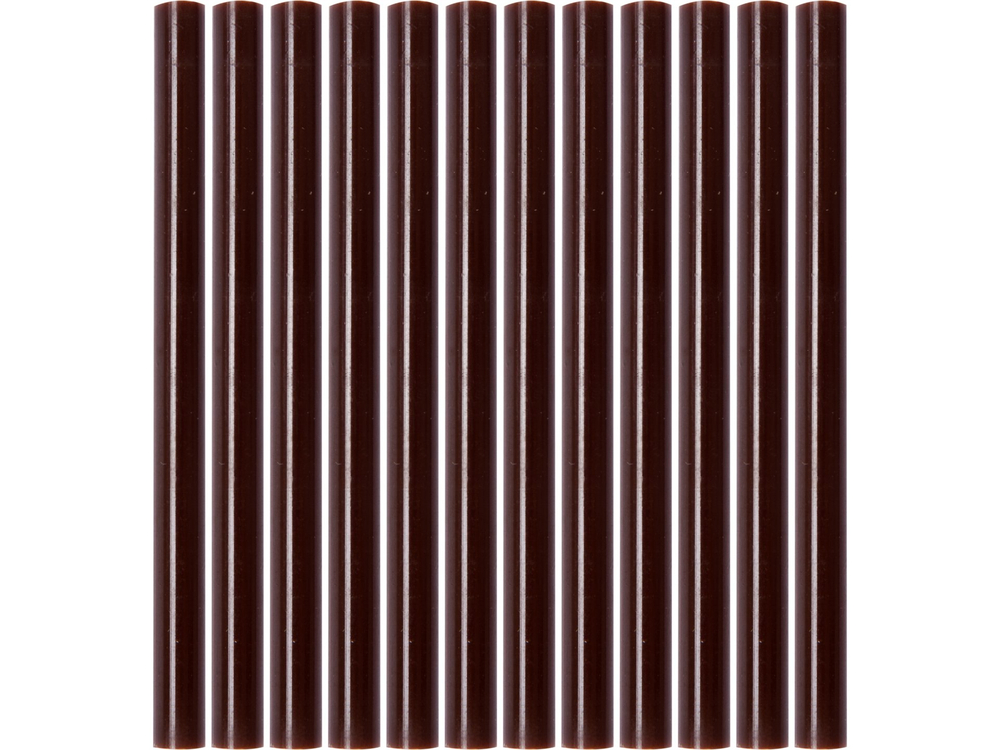 Colla a caldo marrone con diametro di 7,2 mm e lunghezza di 100 mm. La confezione contiene 12 stick di colla.