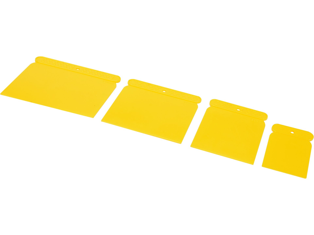 Spatole giapponesi in plastica, utilizzate per la distribuzione precisa di colla, malta, stucco, resine, ecc. Realizzate in plastica resistente e flessibile.