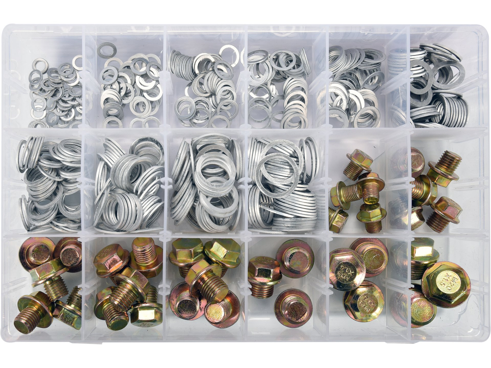 Set di 534 rondelle e tappi di scarico in alluminio per coppe dell'olio.