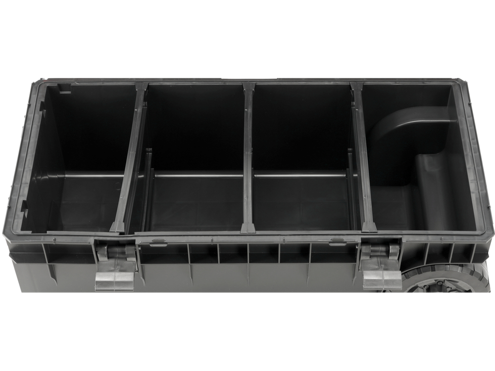 - Pojemna ergonomiczna skrzynia narzędziowa na kołach.