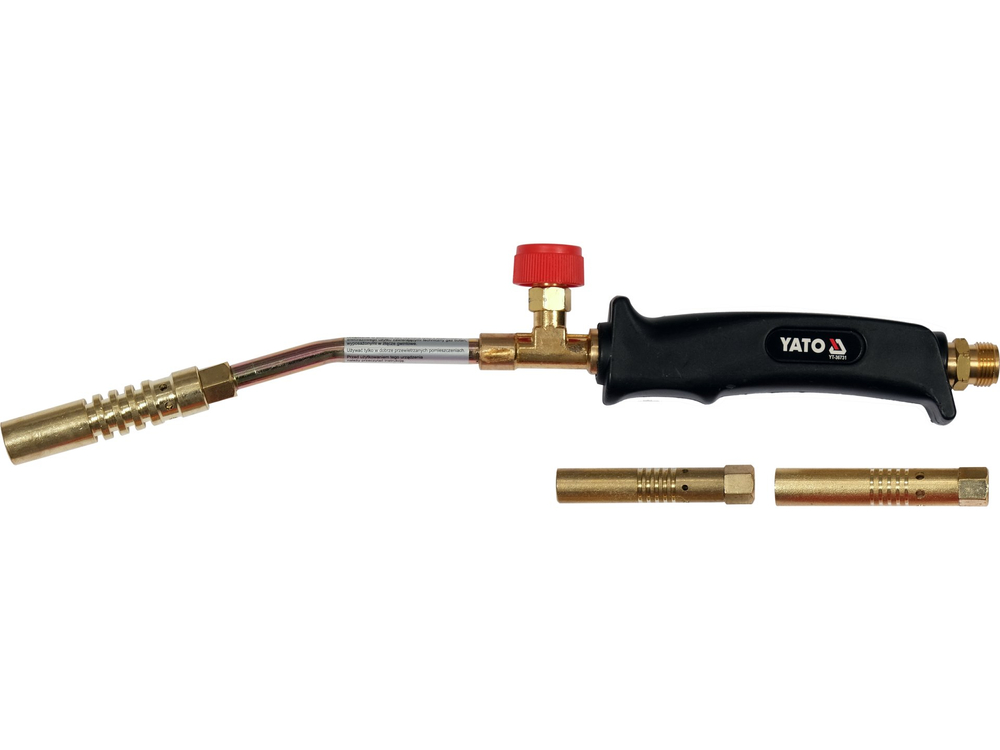 Torcia per saldare con tre ugelli rotondi in ottone con diametri: 17, 14, 13 mm.