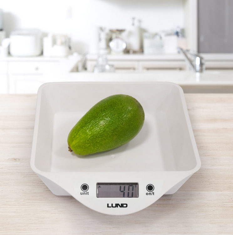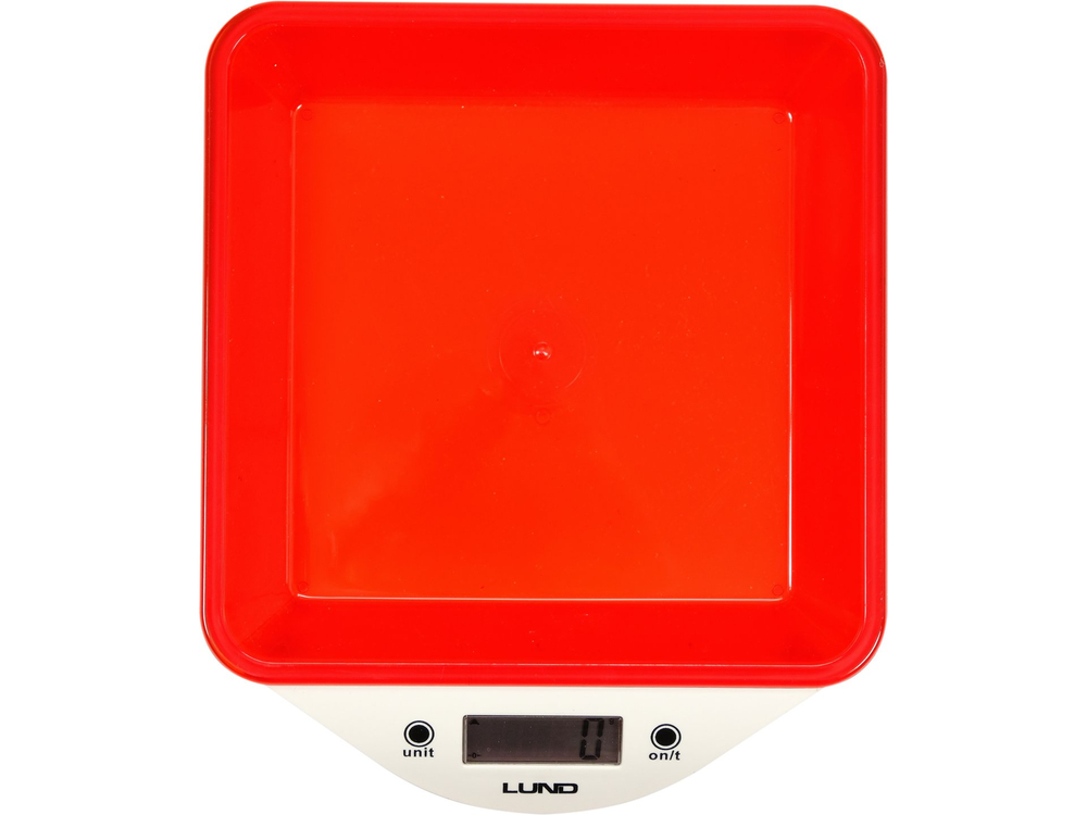 Bilancia da cucina LUND con una ciotola con una capacità totale di 800 ml e un carico massimo di 5000 g. Dotata di un display LCD di facile lettura che mostra 4 unità di peso tra cui scegliere e di indicatori di sovraccarico e di batteria scarica. Inoltre, la ciotola può essere rimossa e lavata in lavastoviglie.