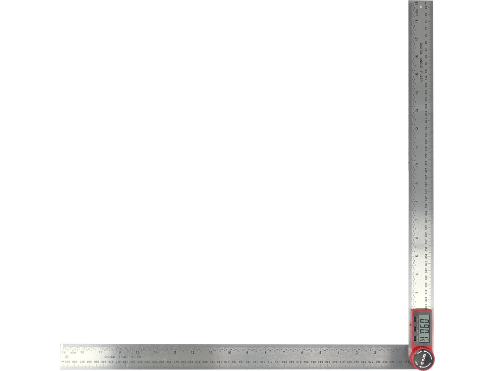 Misuratore elettronico di angoli con braccio di 500 mm di lunghezza e ampio schermo per la lettura dei risultati.