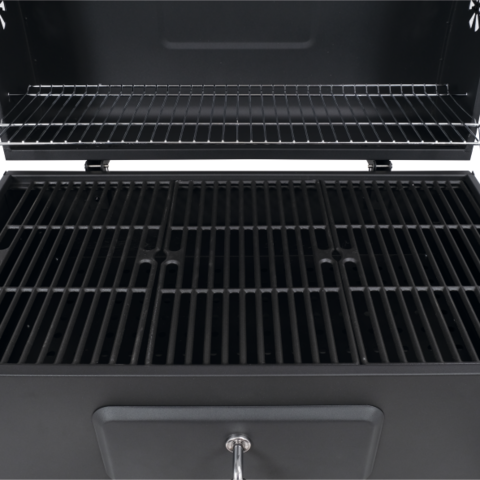 Una grande e robusta griglia a carbone XXL con un'affidabile griglia in ghisa e una griglia riscaldante cromata. Grazie alla regolazione continua dell'altezza della piastra, l'utente è in grado di regolare la temperatura delle braci in base al cibo da preparare. La griglia si riscalda in modo uniforme e mantiene il calore a lungo. È resistente all'abrasione e alla corrosione. La griglia è dotata di un apribottiglie incorporato, di ripiani laterali pieghevoli e di un cassetto per la cenere estraibile.