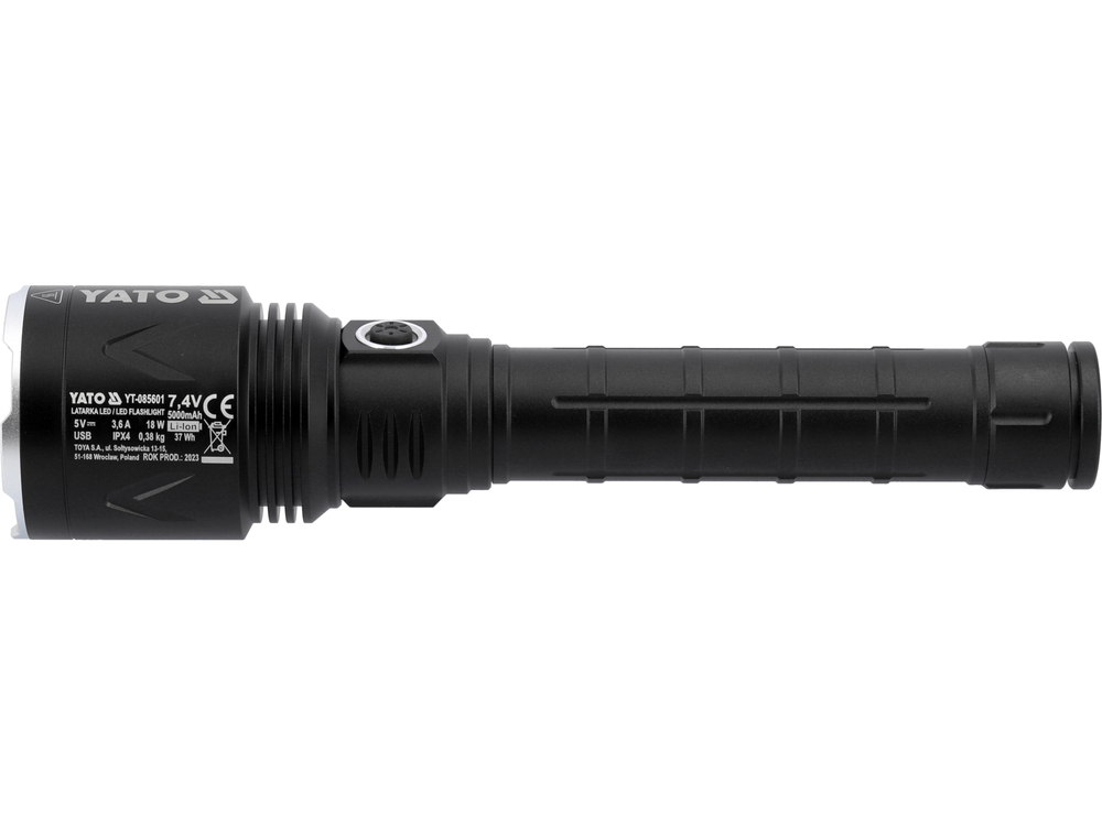 Torcia in alluminio resistente con funzione di power bank. Il LED COB da 100 W fornisce una potenza luminosa di 8.000 lm. La torcia funziona in tre modalità principali: alta - media - bassa e a impulsi. L'ampiezza del fascio di luce può essere regolata con la funzione di zoom sulla testa della torcia. La torcia si ricarica tramite la porta USB. È incluso un cavo USB da 2A lungo 50 cm. La torcia può essere utilizzata come powerbank con una capacità di 5000 mAh.