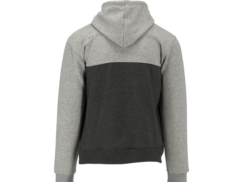 Felpa con cappuccio con un'unica grande tasca vicino alla vita. Il materiale è un cotone spesso e caldo con aggiunta di poliestere. Essendo un materiale naturale, il cotone è molto piacevole al tatto. Il peso di 300 g/m² garantisce un comfort termico ottimale sia in primavera che in autunno. L'aggiunta di poliestere rinforza la fibra, migliorando la resistenza allo strappo del materiale. Stampe speciali con inchiostro riflettente contribuiscono alla visibilità di chi lo indossa, soprattutto negli ambienti bui.