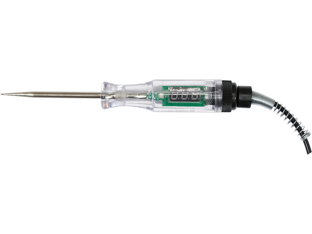 Tester di tensione per autoveicoli per il controllo dell'efficienza degli impianti elettrici. Dotato di LED e di display che visualizza la tensione misurata.