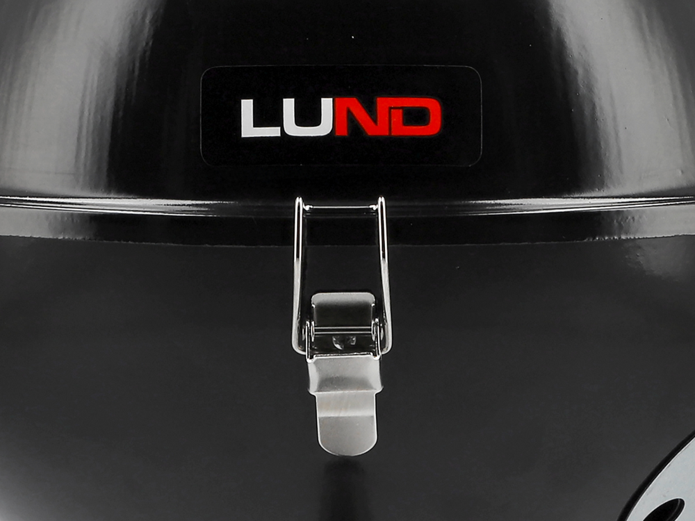 Il classico barbecue a carbonella rotondo da turismo LUND 99922 con griglia cromata e coperchio termoregolatore. È dotato di numerose caratteristiche: un focolare zincato, aperture per regolare la circolazione dell'aria e fibbie per chiudere saldamente il coperchio. Il barbecue è conforme agli standard di sicurezza.