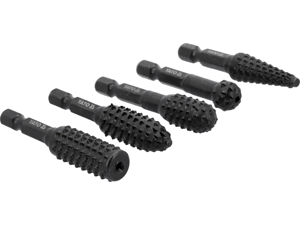 Un set di raspe in acciaio al carbonio annerito. Può essere utilizzato per la lavorazione del legno, per allargare i fori quando si montano le serrature delle porte, per sistemare le giunzioni della falegnameria e per smussare gli spigoli.