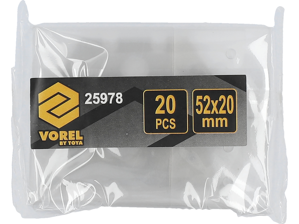 - Dimensioni: 52 x 20 mm (lunghezza superiore: 30 mm)