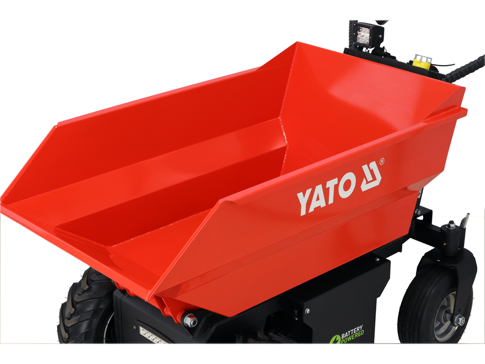 Il carrello elevatore elettrico per l'edilizia è un dispositivo moderno ed ecologico progettato per il trasporto di materiali nei cantieri, nei magazzini e in altri luoghi che richiedono una movimentazione efficiente dei carichi, anche in spazi ristretti. L'utilizzo di un motore DC brushless da 1000 W garantisce elevate prestazioni e affidabilità. Il sistema idraulico consente di ribaltare il carico in modo rapido ed efficiente.