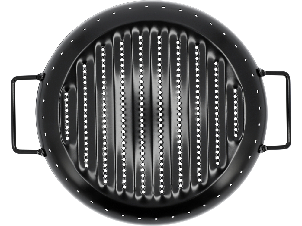 - la superficie leggermente zigrinata della padella impedisce che il cibo si attacchi eccessivamente. Numerosi fori nella base e sui lati garantiscono una migliore circolazione del calore e del fumo e un'efficace eliminazione dell'eccesso di grasso