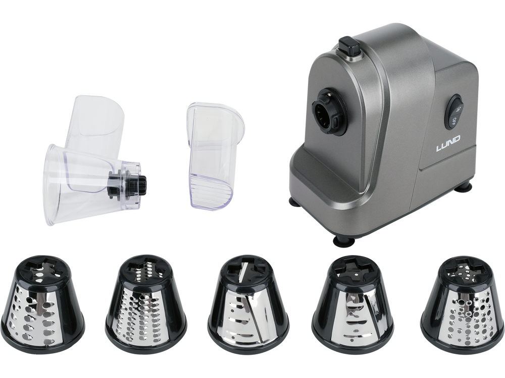 La trituratrice elettrica da 250 W è un dispositivo pratico che facilita notevolmente la preparazione quotidiana dei pasti. Taglia rapidamente e uniformemente le verdure a fette o a scaglie, aiutando a creare insalate fresche, contorni e aggiunte ai pasti. Cinque tamburi intercambiabili con lame in acciaio inossidabile garantiscono un taglio preciso di verdure crude e cotte di diverse spessori.
