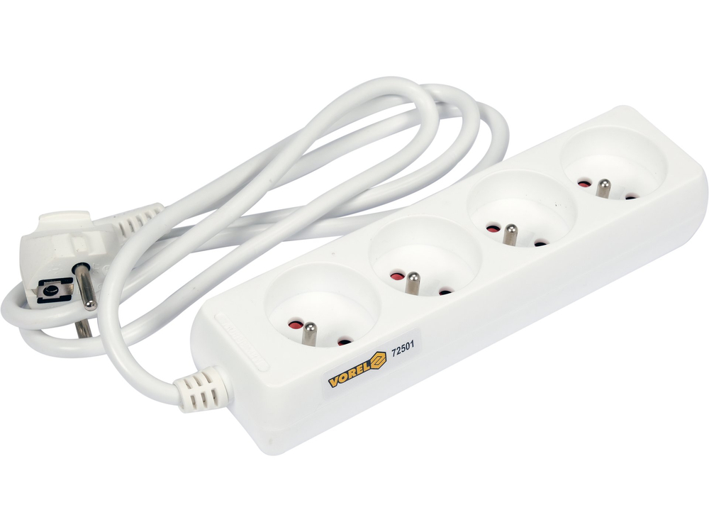 ELEKTRISKĀS PAGARINĀJUMA KABELIS, BALTS, 4 ROBEŽAS AR ZEMĒJUMU, 1,5 M