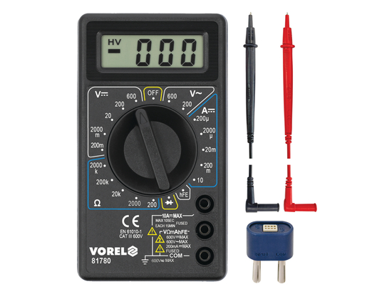 Universālais mērinstruments 81780 ar manuālu diapazonu katram mērījumam ļauj veikt pamatmērījumus elektrības jomā.