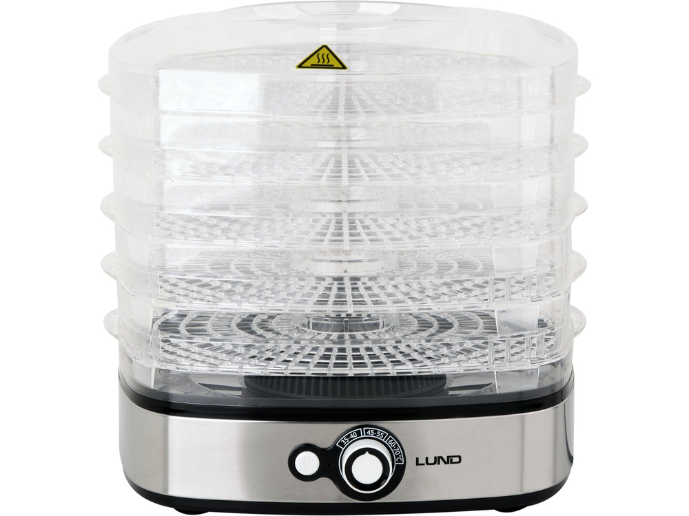 - maksimālais ierīces izmērs 5 sietiem: 34 x 31 x 32 cm (garums x platums x augstums) - ideāli piemērots pat lielāku produktu žāvēšanai.