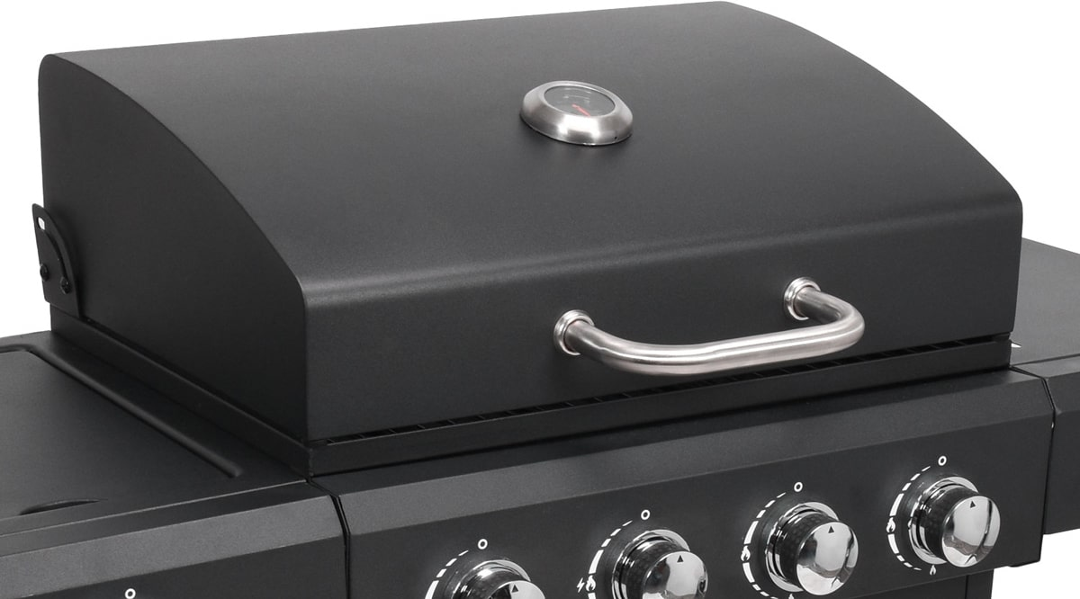 - TEMPERATŪRAS KONTROLE - pateicoties pogām, vākam, vairākiem degļiem un termometram, jūs varat pielāgot temperatūru atbilstoši gatavotajai gaļai, dārzeņiem un sieram.