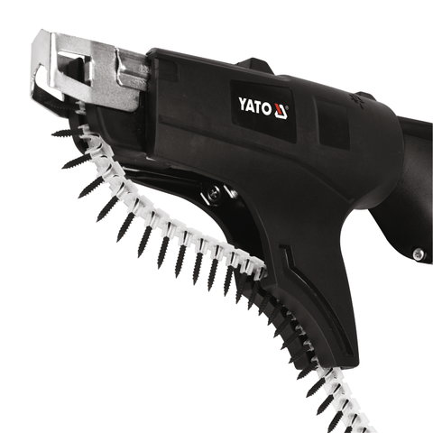 550 W drywall skrūvgriezis ar standarta 25-55 mm skrūvju magazīnu. Skrūvgriezis, kas paredzēts lietošanai ar žurnāla skrūvēm vai atsevišķām skrūvēm, ievērojami paātrina darbus ar ģipškartona plāksnēm, jo izmanto skrūvju padeves siksnu un lielu ātrumu - līdz 5500 apgr./min.