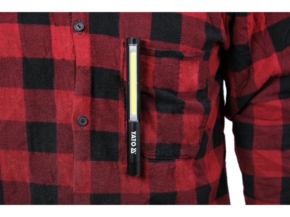 Yato alumīnija inspekcijas lukturītis ar 3 režīmiem, tostarp sarkanu brīdinājuma gaismu. COB LED nodrošina spēcīgu, izkliedētu gaismu ar 200lm. Papildu funkcijas ietver magnētisko pamatni un metāla klipu.
