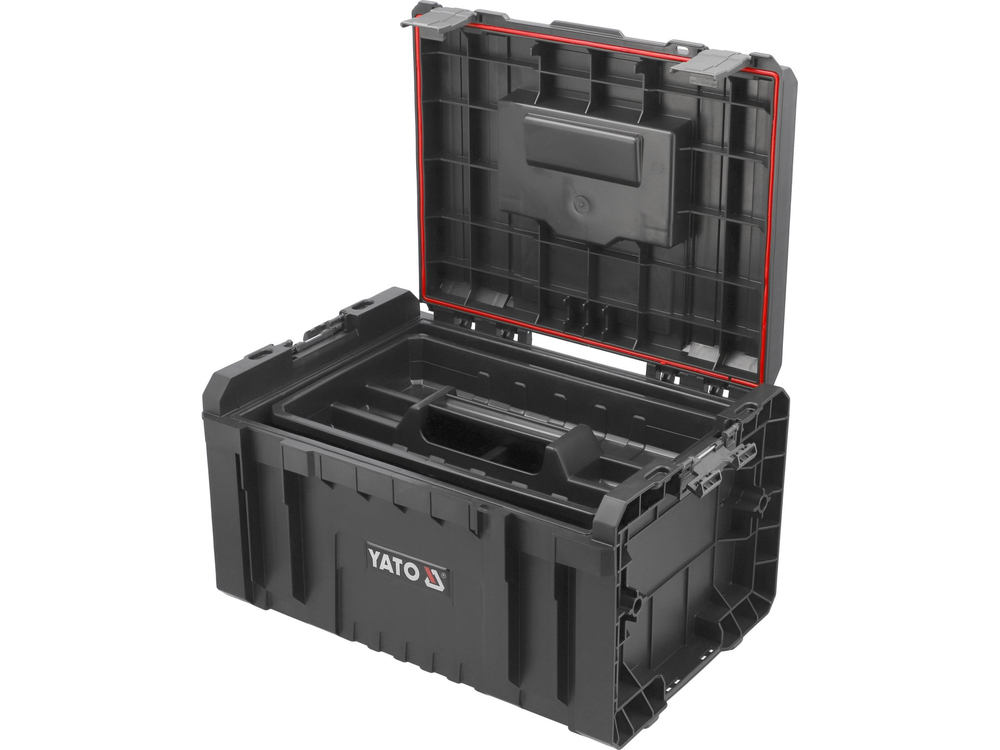 Ietilpīga modulāra instrumentu kaste, kas jau standartā piedāvā ļoti bagātīgu aprīkojumu: 3 regulējamas starpsienas, ietilpīgu paplāti un izturīgus stiprinājumus un sānu savienotājus no stipra poliamīda.