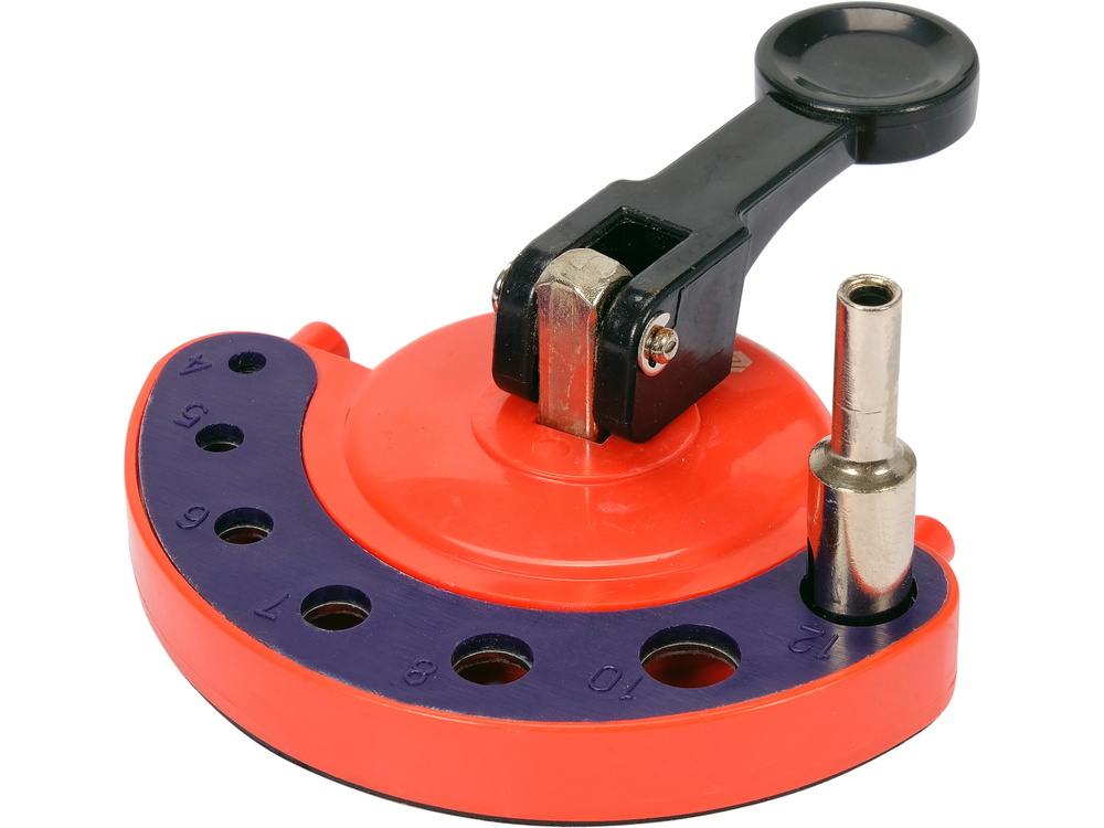 Rokasgrāmata, urbšanas veidne urbšanai keramikas flīzēs. Korpuss izgatavots no pret bojājumiem izturīgas plastmasas. Aprīkots ar spēcīgu gumijas piesūcekni, diametrs aptuveni 100 mm, biezums aptuveni 15 mm. Perimetrā ir vadotnes caurumi, pastiprināti ar metāla gredzeniem fi 4 /5/6/7/8/10/12 mm. Komplektā ietilpst arī īpaši cauruļveida urbji ar dimanta virsmu /diamanta pārklājumu/.