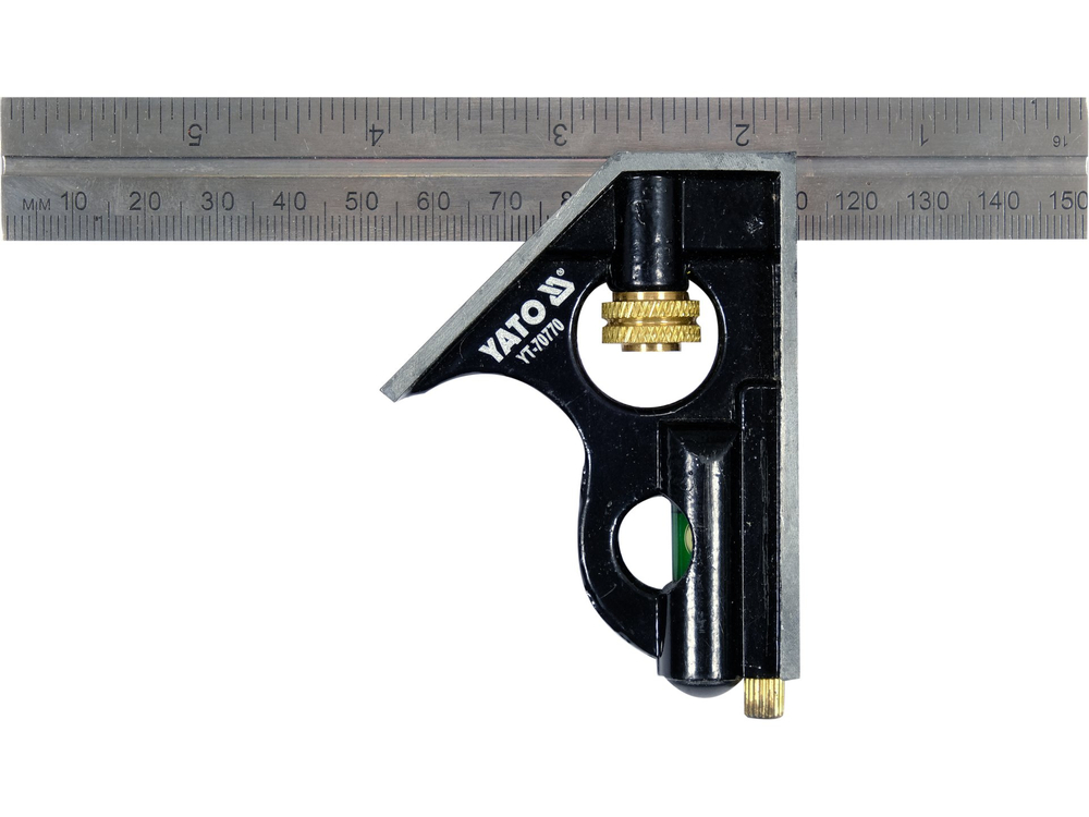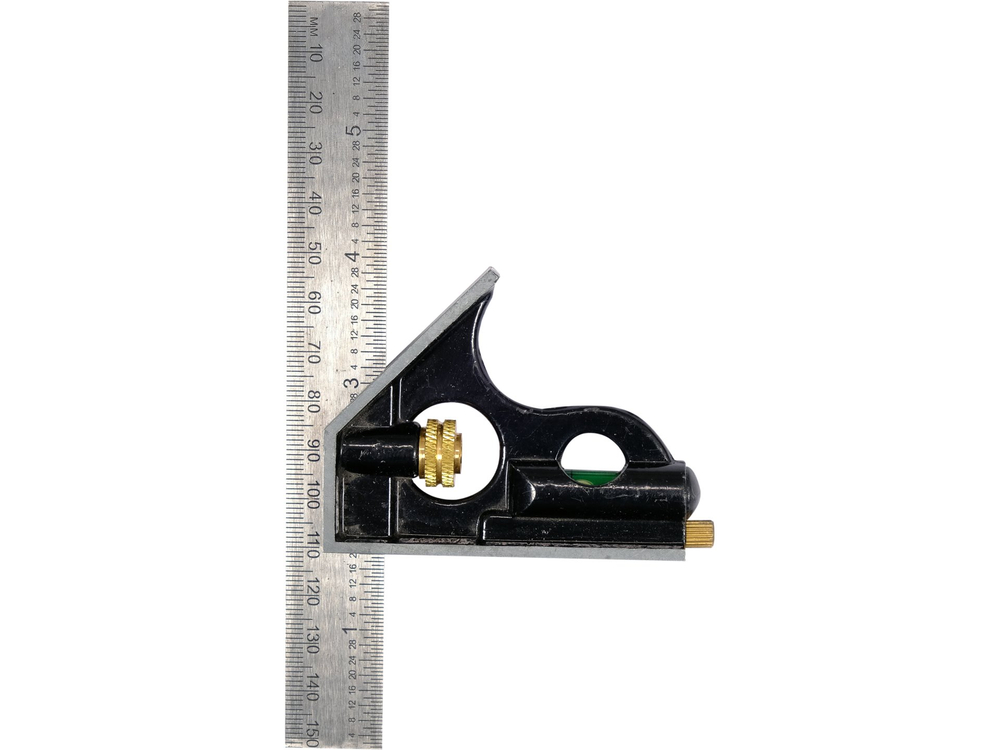150 mm slīpums uz nerūsējošā tērauda stieņa ar frēzētām collu un milimetru iedaļām.