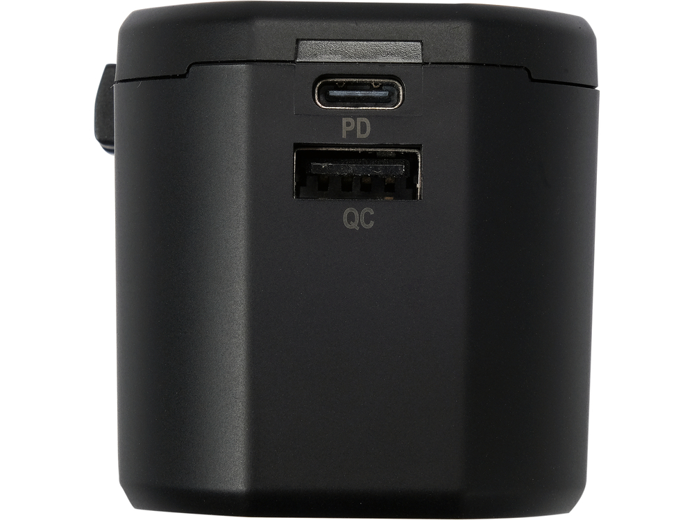 Ceļojuma adapteris, kas piemērots vairāk nekā 150 valstīs, ar iebūvētu lādētāju ar diviem USB portiem ar ātrās uzlādes tehnoloģiju. Iebūvētais barošanas avots ar kopējo jaudu 18 W aizstās tālruņu un vairuma planšetdatoru lādētājus.
