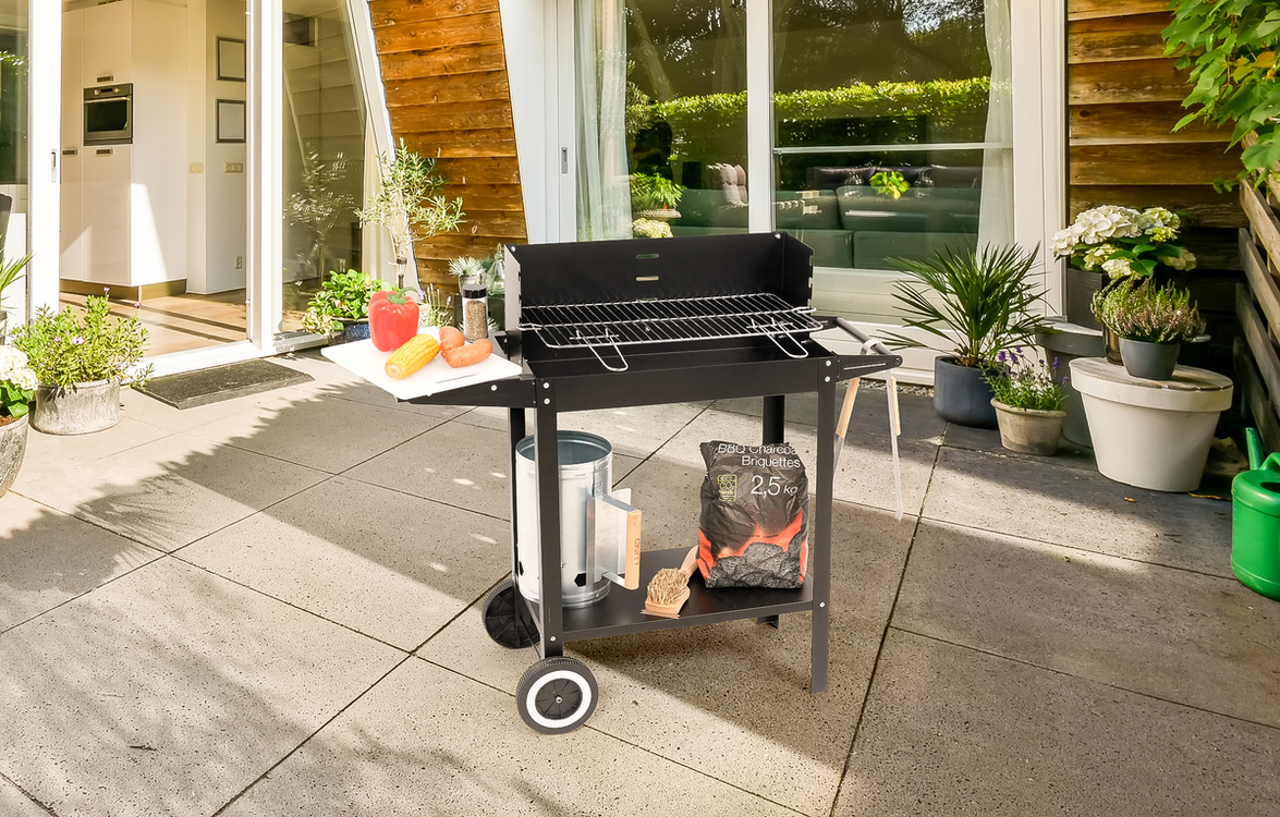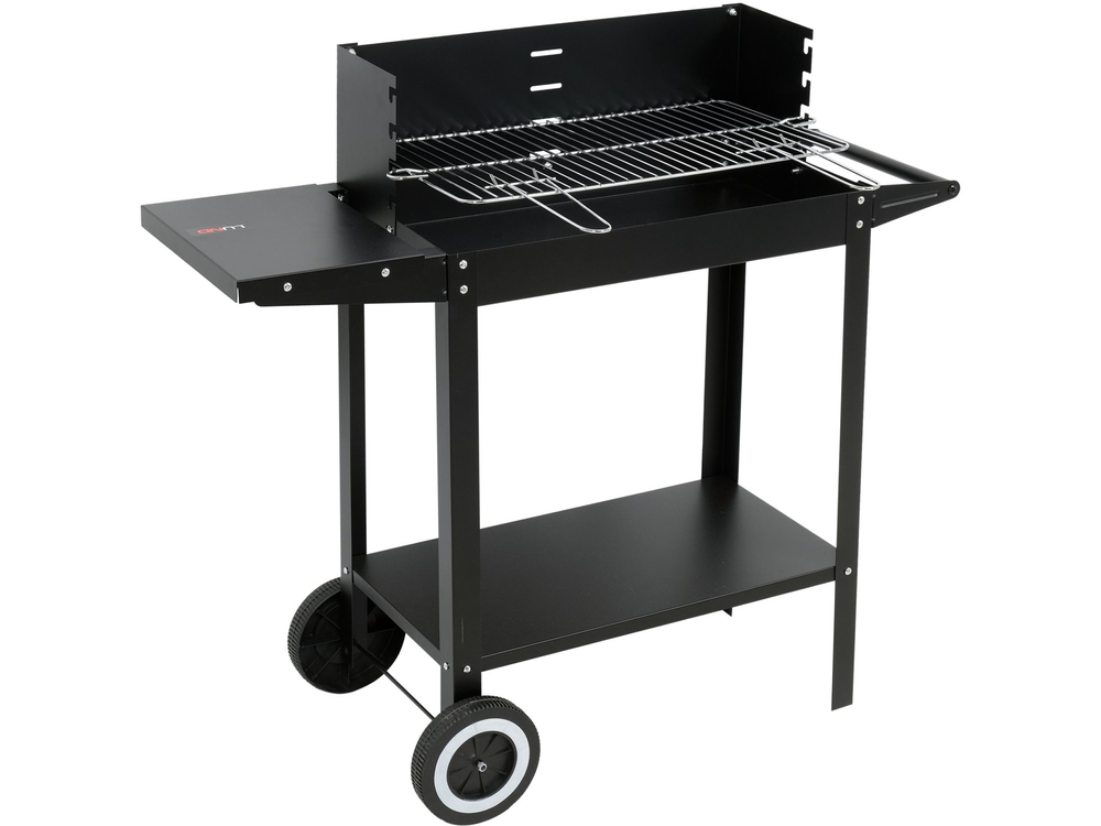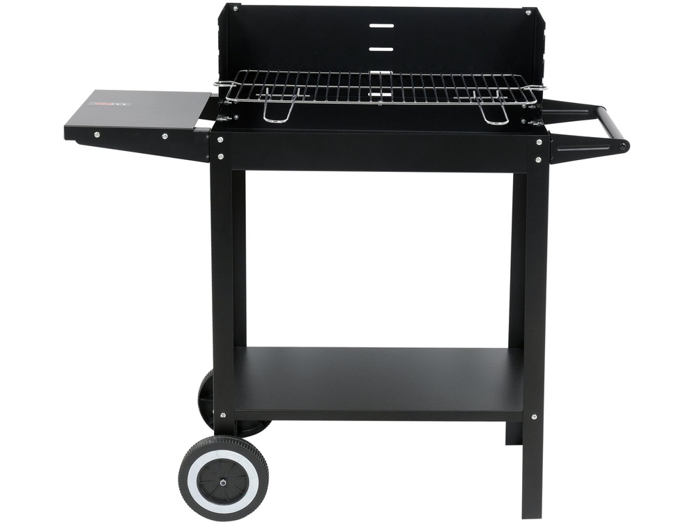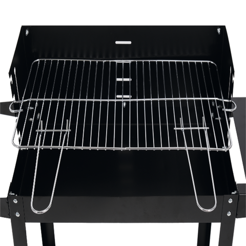 Klasisks kokogļu grils ar hromētu režģi un 4 pozīciju regulējamu augstumu virs kurtuves. Aprīkots ar sānu plauktiem, apakšējo plauktu, transportēšanas riteņiem un vēja aizsargu.