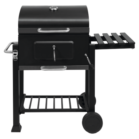 Liels, izturīgs kokogļu grils ar emaljētu režģi un hromētu statīva režģi. Režģis nodrošina vieglu tīrīšanu, ir nelīpošs, labi vada siltumu un ilgi izdala siltumu. Pateicoties plātnes bezgalīgi regulējamam augstumam, lietotājs var pielāgot oglīšu temperatūru atbilstoši gatavojamajam ēdienam. Papildu funkcijas ietver iebūvētu pudeļu atvērēju, atlokāmu sānu plauktu un izvelkamu pelnu trauku.
