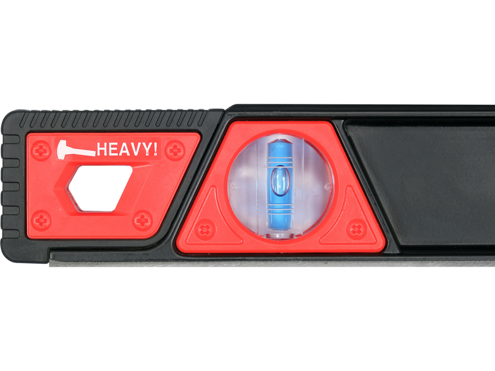 Izturīgs, triecienizturīgs alumīnija līmeņrādis. Divi lieli rokturi atvieglo mērīšanu. Līmeņrāža galus aizsargā elastīgi triecienizturīgi buferi, un tos var sist ar āmuru. Spirta līmeņrādis ir aprīkots ar trim flakoniem: vertikāls, horizontāls, 45 grādi. Flīzētajam pamatam ir 5 magnēti.