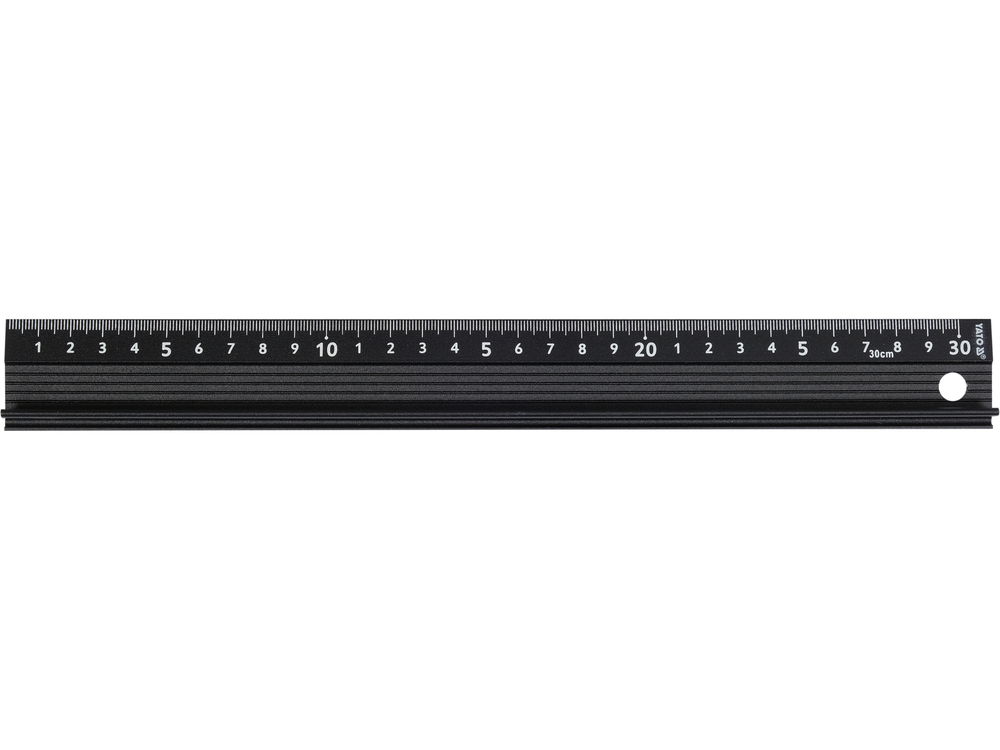 Alumīnija lineāls ar profilu augšpusē, kas kalpo kā drošs satvēriens, lai noturētu lineālu griešanas laikā. Apakšējā plakne ir oderēta ar putuplasta sloksni, lai aizsargātu mērāmo materiālu. Lineālā ir caurums pakāršanai, kas atvieglo lietošanu.