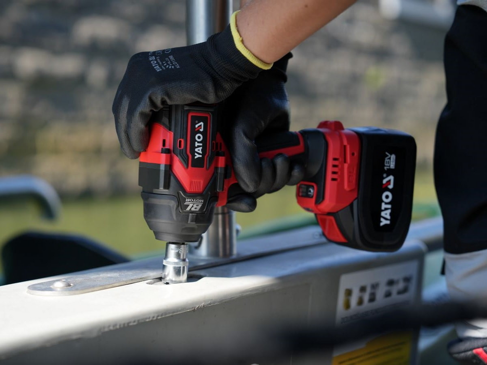Bezass triecienatslēgas uzgriežņu atslēgu, ko darbina YATO 18 V platformas akumulators. Tā kompaktais izmērs un 1200 Nm griezes moments būs noderīgs gan automobiļu darbnīcā, gan būvlaukumā. Nelielais svars ļauj uzgriežņu atslēgai ērti strādāt, kad tā pacelta virs galvas. 1/2 uz 1/4 collu adapteris ir iekļauts komplektācijā.