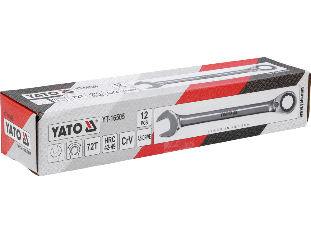 12 kombinēto atslēgu ar sprūdratiem komplekts. Korpuss atvieglo ērtu piekļuvi un nodrošina, ka darbnīcā viss ir kārtībā.