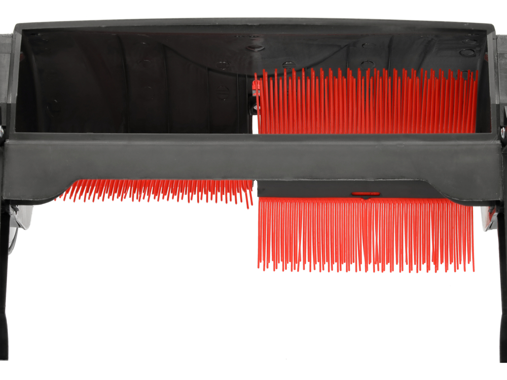 Darba platums 53 cm nodrošina efektīvu atkritumu savākšanu un deponēšanu 100 litru ietilpīgajā maisā, izmantojot četras rotējošas birstes. Pateicoties regulējamam darba augstumam, ierīce atvieglo braukšanu pa dažāda veida reljefu, tostarp pa nelīdzenu, slīpu vai bruģētu virsmu. Darbs ar savācēju vertikālā stāvoklī, bez nepieciešamības bieži noliekties, palielina komfortu dārza sakopšanas laikā.