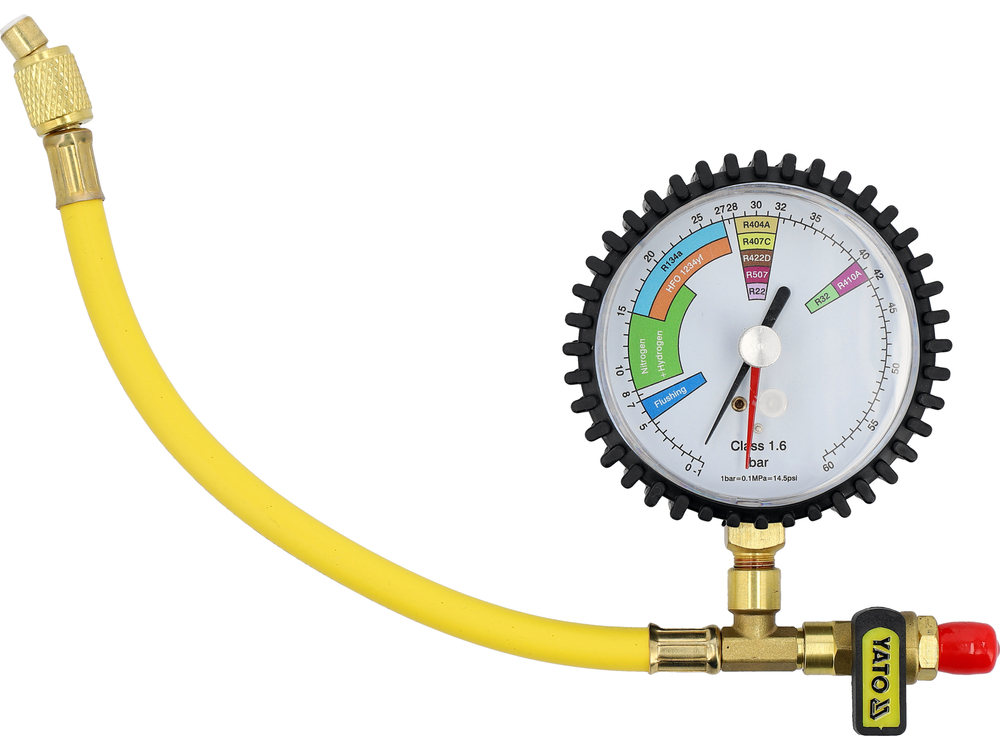 - Standarta savienojums G1/4 SAE (1/4'' SAE) nodrošina saderību ar vairumu standarta klimatizācijas uzstādījumu un servisa iekārtu, kas tiek izmantotas nozares