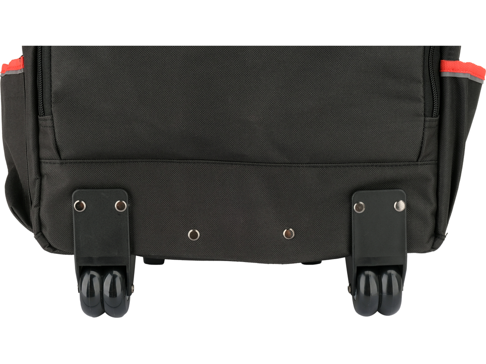 Izmēri 35 x 27,5 x 50,5 cm nodrošina telpu, lai droši izvietotu elektroinstrumentus, piederumus un sīklietas montāžai. Stabila konstrukcija ar sieniņām, āķiem un aizveramām kabatām palīdz saglabāt kārtību un aizsargā iekārtu no bojājumiem transportēšanas laikā.