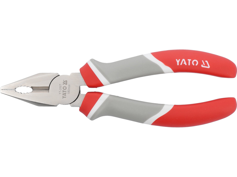 Universalios 180 mm ilgio YATO replės. Standartinės formos žandikauliai su labai tiksliai padarytais grioveliais ir tvirtu pjovimo elementu. Rankenos padengtos patogiais plastikiniais trijų komponentų dangteliais.