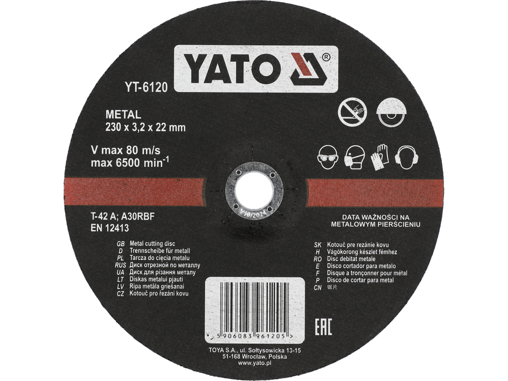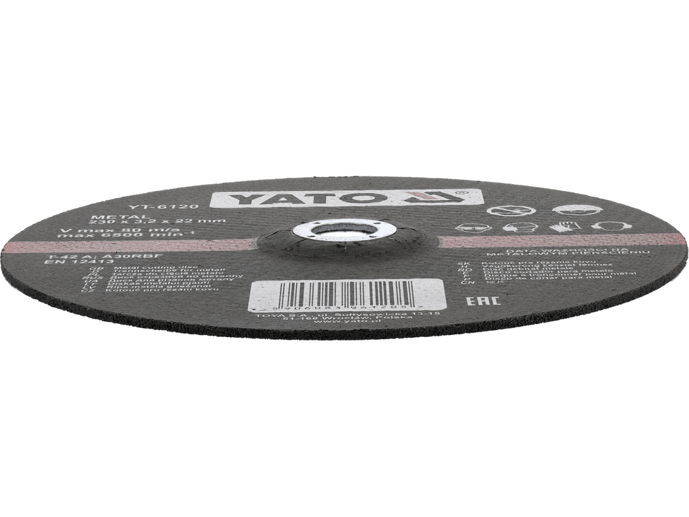 YATO prekės ženkloišgaubtas metalo pjovimo diskas pagamintas iš aukštos kokybės tinkamo kietumo ir granuliuotumo abrazyvinės medžiagos.