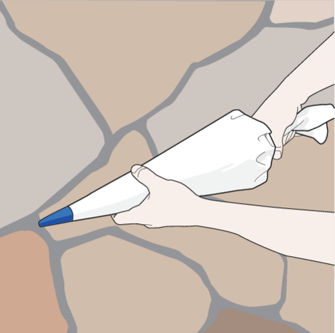 Į maišelį įdėkite reikiamą skiedinio, skiedinio, skiedinio, klijų kiekį. Įkišę antgalį į reikiamą vietą, išspauskite masę iš maišelio.