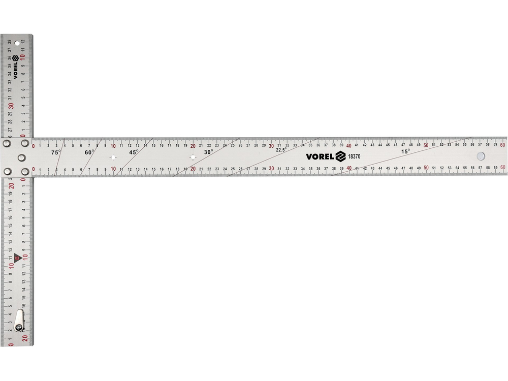 Rankenos ilgis 600 x 390 mm su visuose kraštuose nuolat pažymėtomis milimetrinėmis padalomis. Ant trumpesnio kampinio laikiklio peties yra fiksavimo skląstis, kad atliekant matavimus būtų galima lengvai pritvirtinti.