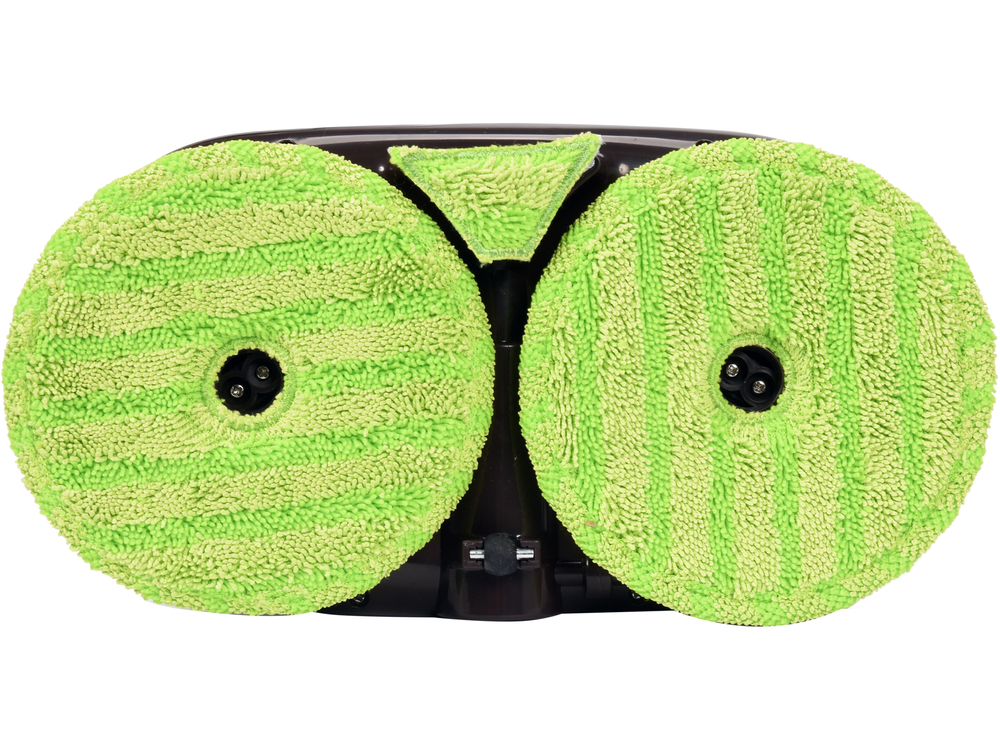 - Kruopštus valymas - 2 apvalūs mikropluoštai valo grindis. Papildomas trikampis mikropluoštas surenka likučius, esančius tarp apvalių mikropluoštų.