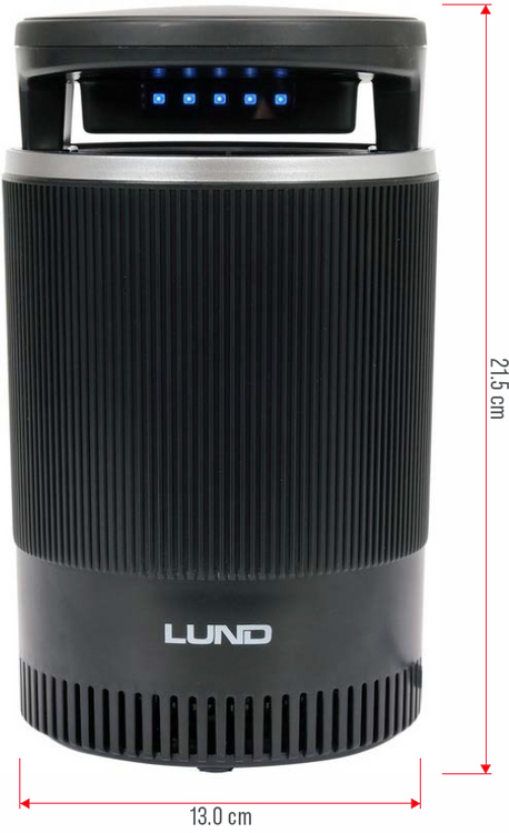 UVA insekticidinė lempa su ventiliatoriumi, skirta skraidantiems vabzdžiams, tokiems kaip uodai, musės, vapsvos, kandys ir kt., privilioti ir gaudyti. Įrenginyje naudojama galinga ir ilgai šviečianti LED šviesa, kurios bangos ilgis yra 365 nm, o veikimo plotas - 30 m2. Ventiliatoriui pritraukus vabzdžius, jie laikomi konteineryje su unikaliu piltuvėliu, kuris užkerta galimybę jiems pabėgti. USB laidu maitinamą modelį galima prijungti prie įvairių prietaisų, todėl jį galima naudoti dar plačiau, pavyzdžiui, per powerbanką stovyklaujant.