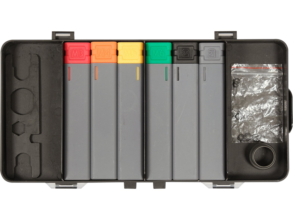 - Kniedžių veržlių galvutės: M3, M4, M5, M6 jungtis atlieka naudodamos vidinį sriegį turinčią įvorę, todėl papildomus komponentus galima prisukti metaliniais varžtais arba varžtais.