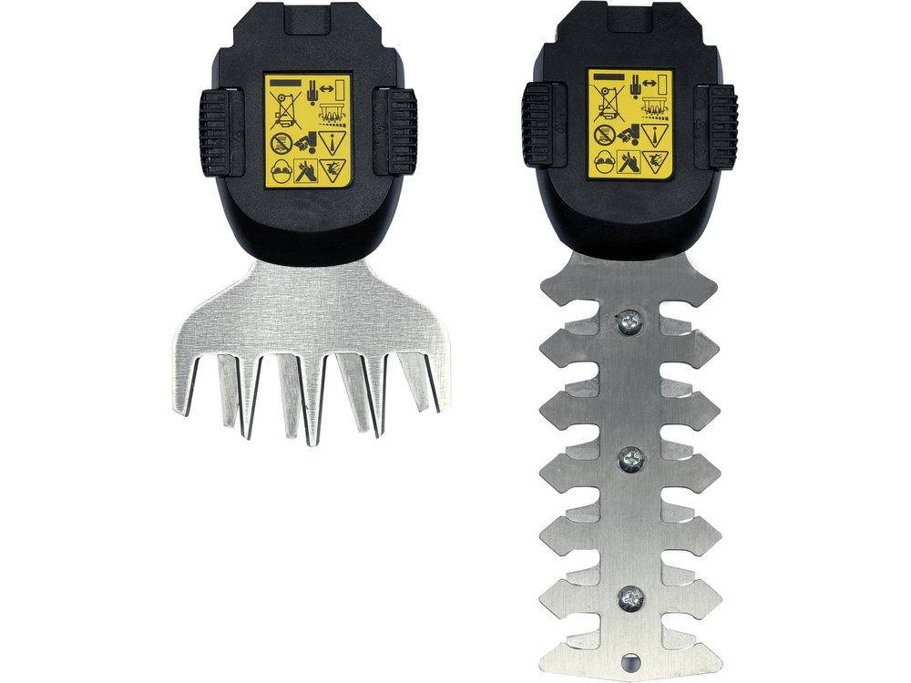 Patogios akumuliatorinės žolės arba gyvatvorių žirklės. Norint pakeisti pjovimo antgalius, nereikia jokių įrankių. Žirkles maitina ličio jonų 3,6 V 1500 mAh akumuliatorius.