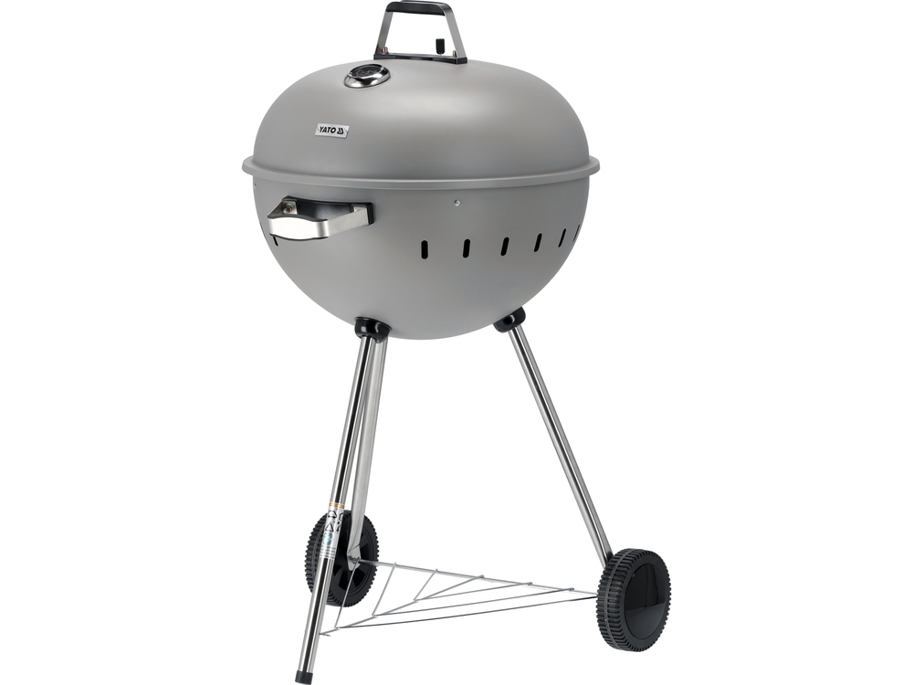 Nešiojamoji medžio anglių kepsninė su chromuotomis grotelėmis ir židiniu su uždaromu dangčiu. Lengva konstrukcija ir ratukai užtikrina laisvą kepsninės perkėlimą į bet kurią terasos ar sodo vietą.